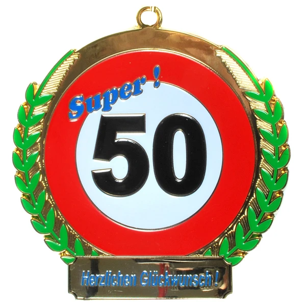 Orden mit Aufschrift: „Super! 50 Herzlichen Glückwunsch!“