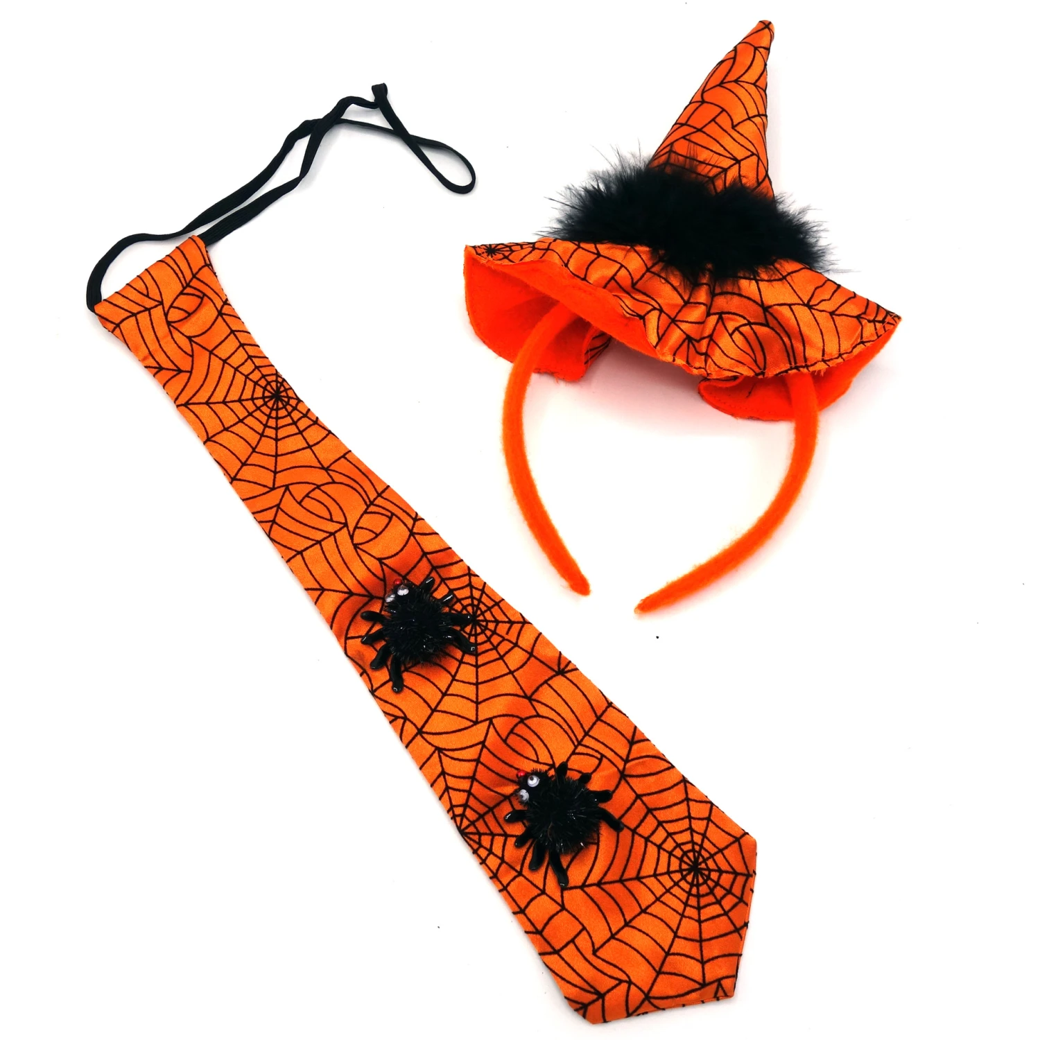 incl. Haarreifen mit Hütchen im Spinnennetz-Design und Krawatte im gleichen Design mit 2 Spinnen